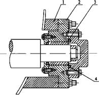 老產(chǎn)品的軸承檢修困難。由于各個軸的軸承體均焊在外殼上,設(shè)備運(yùn)行一定時間后軸承及密封件需要更換時,密封件無法取出,使軸系維修產(chǎn)生困難。設(shè)備改造成SF型后軸系部分采用圖2所示結(jié)構(gòu)。這種結(jié)構(gòu)型式在軸承及密封件需要更換時,可將右端支承體部分取下,更換密封件,而選用O型密封圈密封不僅減少了摩擦力,而且密封效果也更理想。