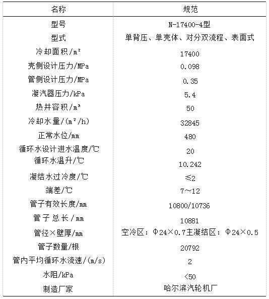 我公司#3汽輪發(fā)電機(jī)組是亞臨界一次中間再熱、單軸、高中壓合缸、雙缸雙排汽、抽汽凝汽式汽輪機(jī),型號(hào)C300-16.7/538/538,凝汽器形式如表1所示。#3機(jī)組為開(kāi)式循環(huán),SF系列凝汽器膠球清洗裝置,配置5臺(tái)48LKXB-20立式單級(jí)單吸導(dǎo)葉內(nèi)體可抽出式混流循泵,每臺(tái)循泵額定供水量10000t/h。