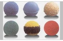 金剛砂膠球:金剛砂膠球分為全金剛砂膠球和半金剛砂膠球兩種。金剛砂膠球適用于清除各種結(jié)垢沉積較多的管道,但對管子有傷害,一般不長期使用,特別銅管更慎用。有效去除硬質(zhì)結(jié)垢,如:碳酸鈣。適用于鋼管、不銹鋼管換熱器。金剛砂膠球不可連續(xù)在水中長期使用,建議使用兩次后,拿出來放在通風(fēng)處晾干(不可爆嗮) ,涼3-5天時間,金剛砂膠球的使用壽命會更長。