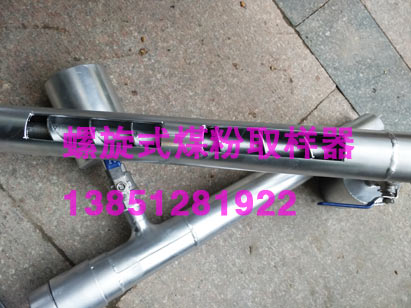 該螺旋式煤粉取樣器設計采用螺旋輸送原理,當煤粉沉落在取樣嘴中,利用外部的手柄或電動執(zhí)行機構旋轉螺旋輸送裝置,煤粉將通過取樣管送到落粉管進入取樣瓶中。