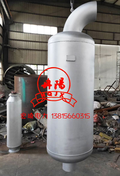 ②為增加廠房頂高空抗風(fēng)的能力,消聲器本體采用支撐式支座,為此,消聲器前的排汽管應(yīng)有一段膨脹彎管以吸收熱脹,如原排汽管段垂直方向已裝有疏水盤,則膨脹彎管要免裝。