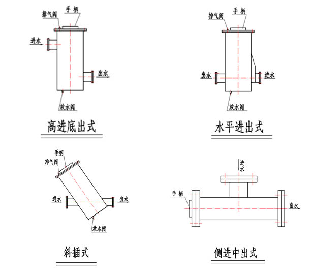 我們將根據(jù)客戶的現(xiàn)場尺寸及運行工況,在滿足通流比的情況下,為客戶量身定做不同形式的濾水器,如水平進出式、斜插式、高進低出式、側進中出式等。