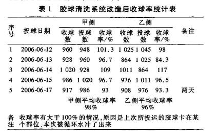 3)膠球預(yù)先在水中浸泡24~48h后再投用;