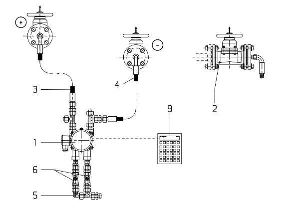 沖洗閥6測量時(shí)將壓差測量表與沖洗水分離。打開相應(yīng)沖洗閥,可用外部水源將壓差測量表以及柔性管內(nèi)的雜質(zhì)沖洗干凈。